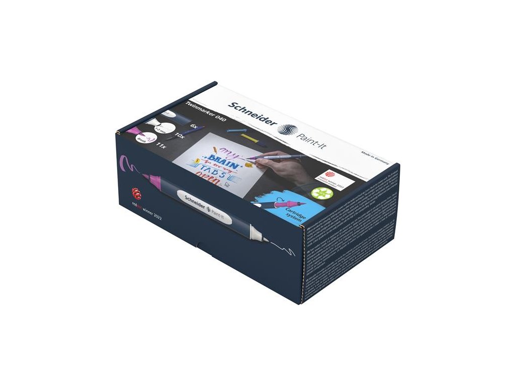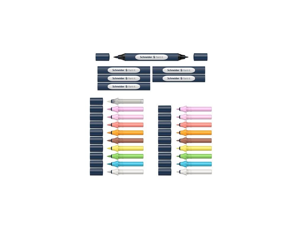 Popisovač, obojstranný, 27-kusová sada, SCHNEIDER „Paint-It 040 Twin marker Set 2”, 10 rôznych farieb