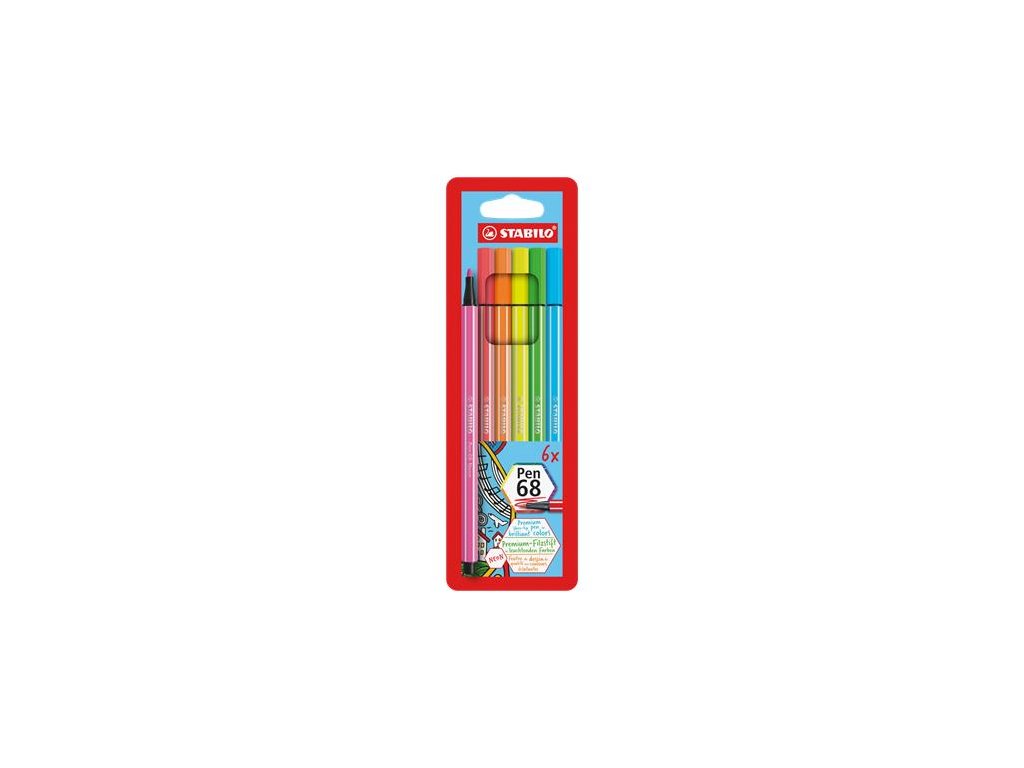 Popisovač, sada, 1 mm, STABILO "Pen 68", 6 neónových farieb