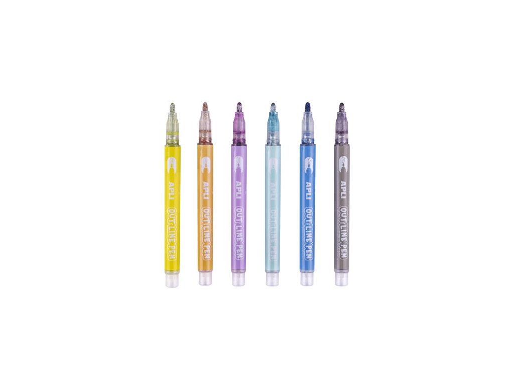 Popisovač, sada, dvojitá čiara, kovový lesk, 5,5 mm, APLI, 6 rôznych kontúrových farieb