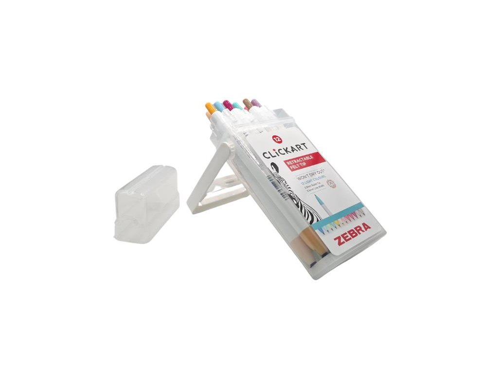 Popisovač, sada, stláčací mechanizmus, 0,6 mm, ZEBRA "Clickart" 12 rôznych pastelových farieb