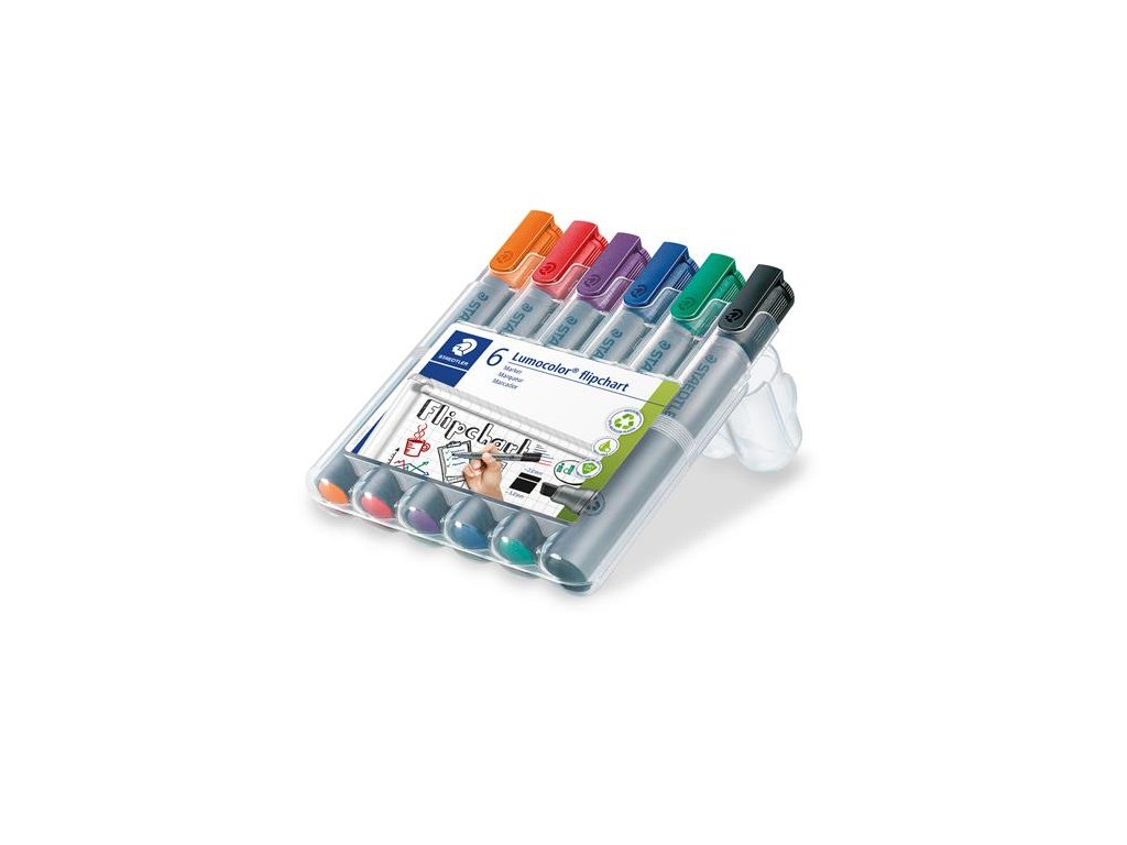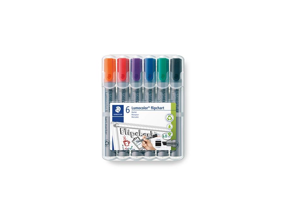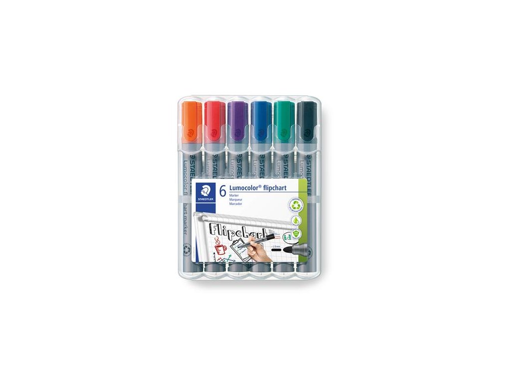 Popisovač na flipchartové tabule, 2 mm, kužeľový hrot, STAEDTLER "Lumocolor 356", 6 rôznych farieb