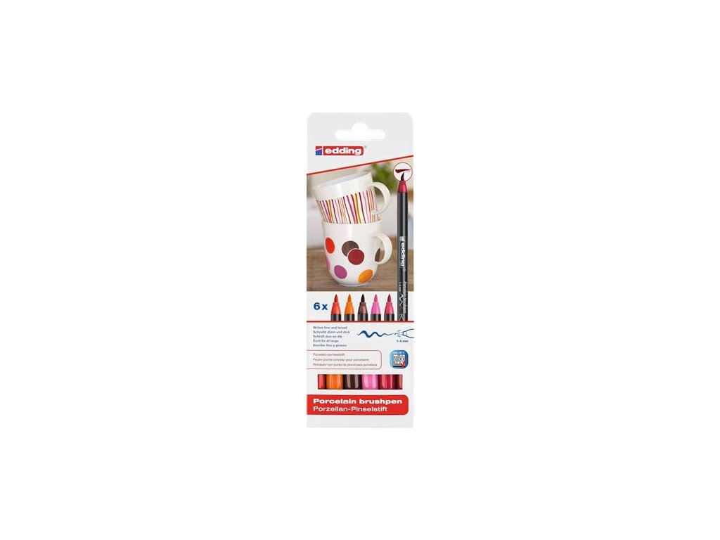 Popisovač na porcelán, sada, EDDING "4200 Warm color", 6 rôznych farieb