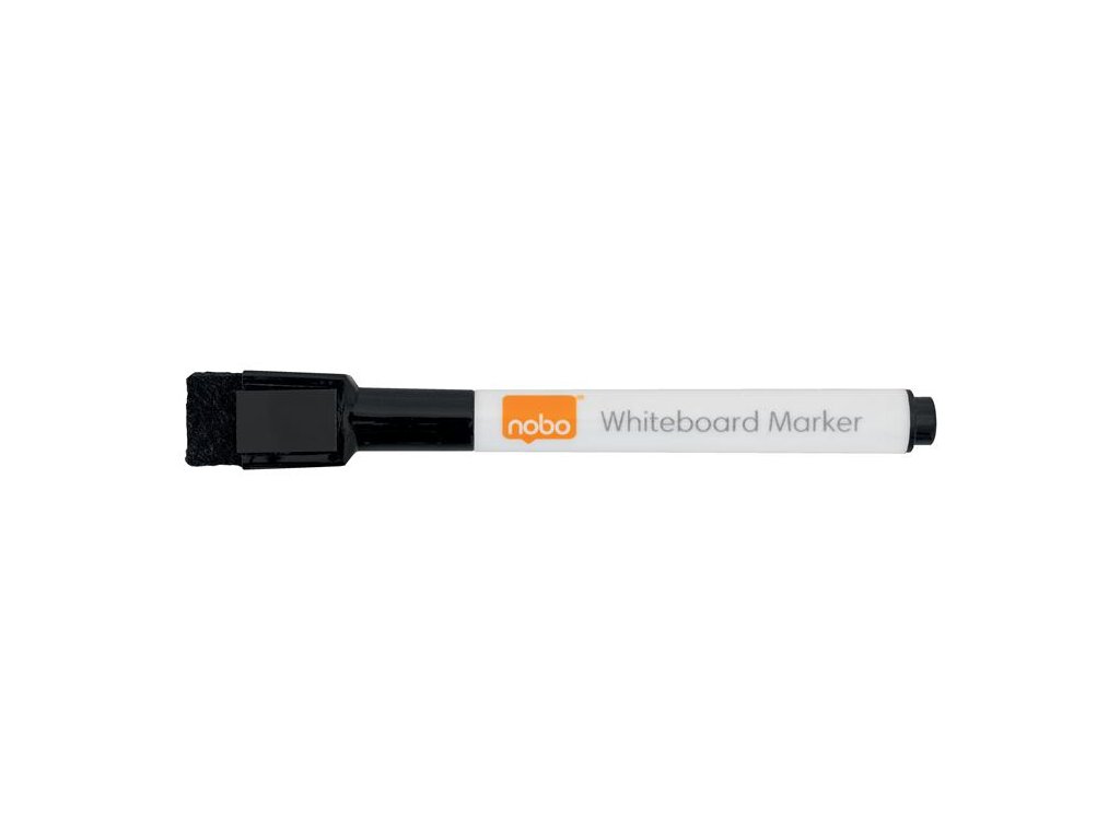 Popisovače na tabule, ktoré sa dajú za sucha stierať, poskytujú vynikajúcu viditeľnosť na neporéznych povrchoch a majú vlastnú gumu na tabuľu v uzávere. Pre optimálny výkon používajte s tabuľami Nobo. - ideálne pre domáce a kancelárske použitie - atrament stierateľný za sucha - atrament s miernym zápachom - s utierkou na tabuľu pripevnenou k uzáveru - farba: čierna - kužeľový hrot - hrúbka: 2 mm - balenie: 6 ks/balenie Značka: NOBO Výrobca: Esselte Kft. Adresa: 1139 Budapest, Lomb u. 37-39. A ép. II. 8., Hungary Web: https://www.accobrands.com/brands/ Email: hungarymarketing@acco.comDodatočné parametre