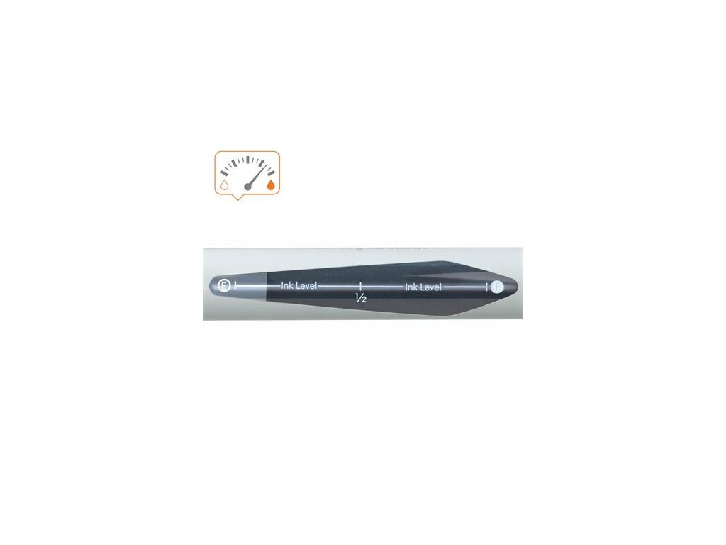 - množstvo atramentu je možné sledovať cez okienko na tele pera