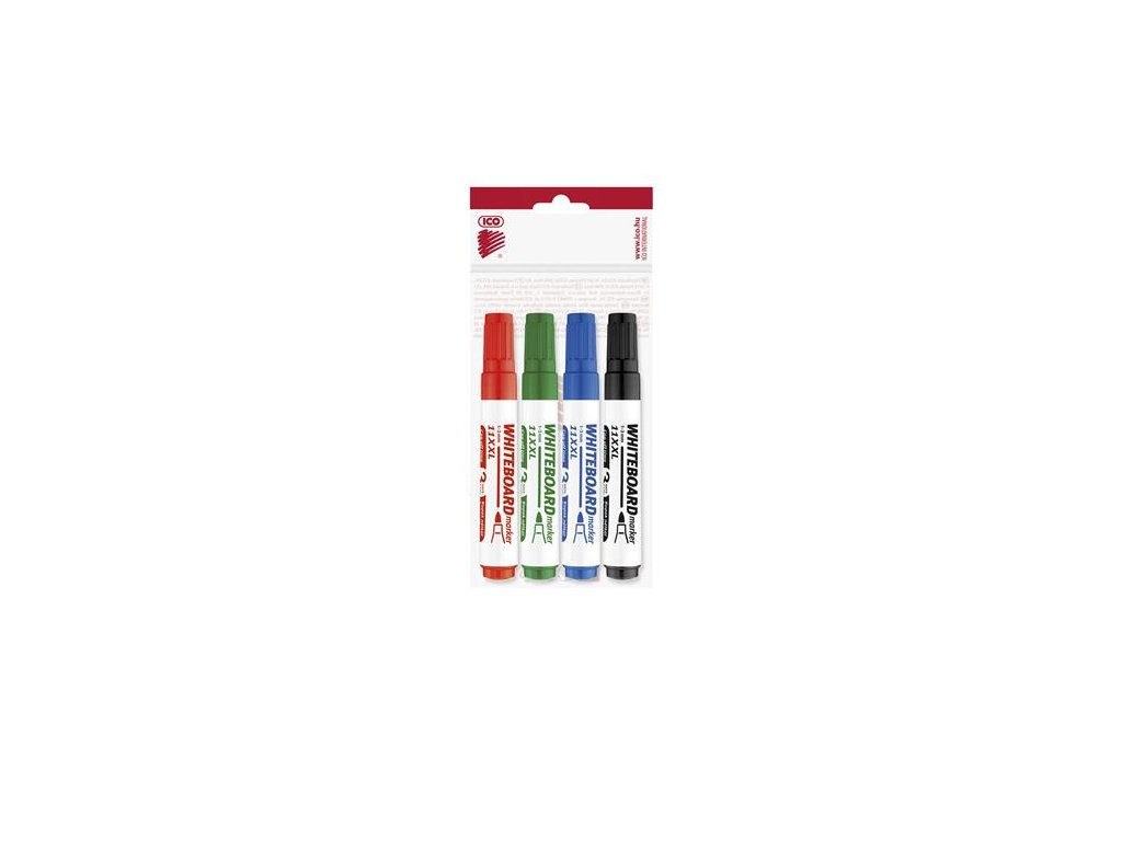Popisovač na tabule a flipchartové tabule, sada, 1-3 mm, kužeľový hrot, ICO "Plan 11 XXL", 4 rôzne farby