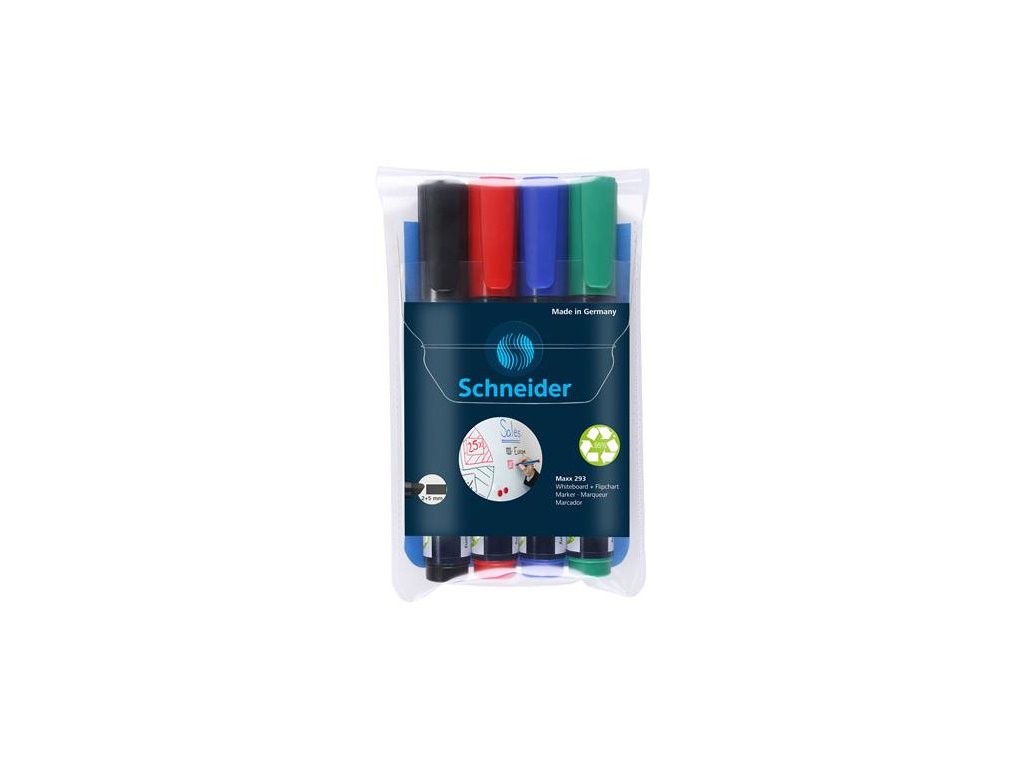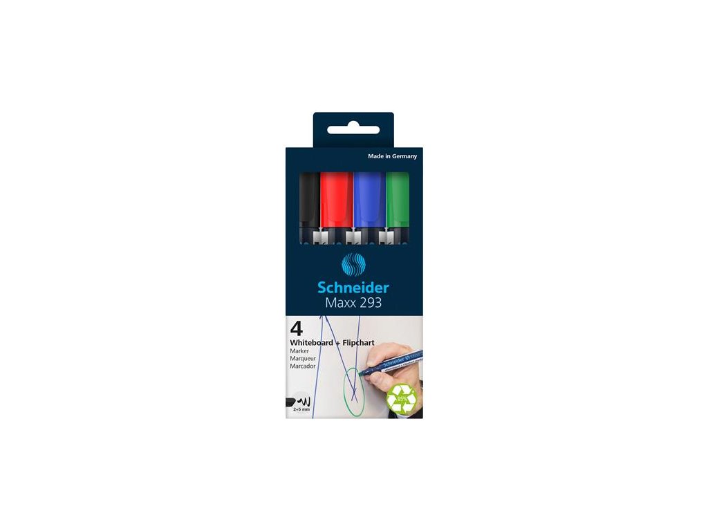 Popisovač na tabule a flipchartové tabule, sada, 1-4 mm, zrezaný hrot, SCHNEIDER "Maxx 293", 4 rôzne farby