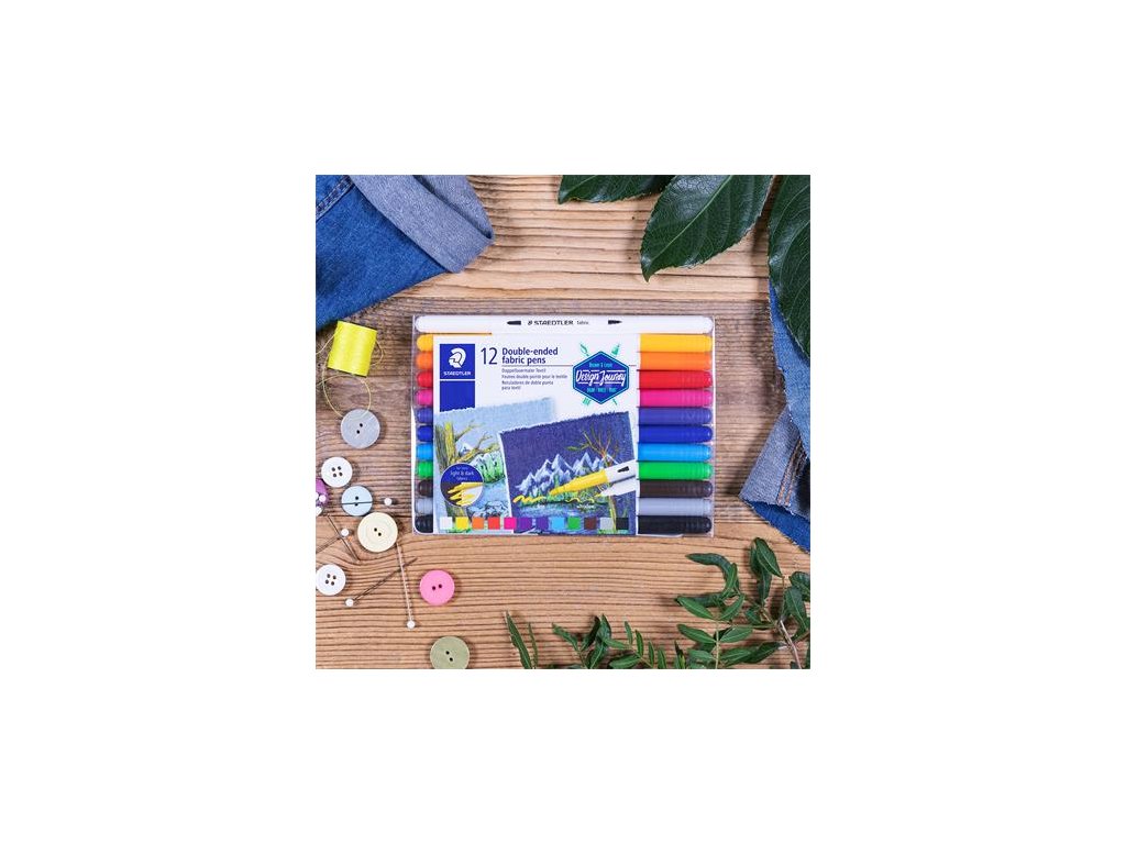 Popisovač na textil, obojstranný, STAEDTLER "3190", 12 rôznych farieb