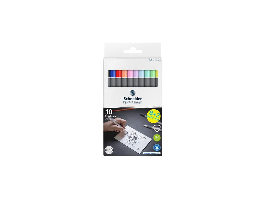 Popisovač v tvare štetca, sada, s ohybným hrotom, SCHNEIDER "Paint-It 070", 10 rôznych farieb