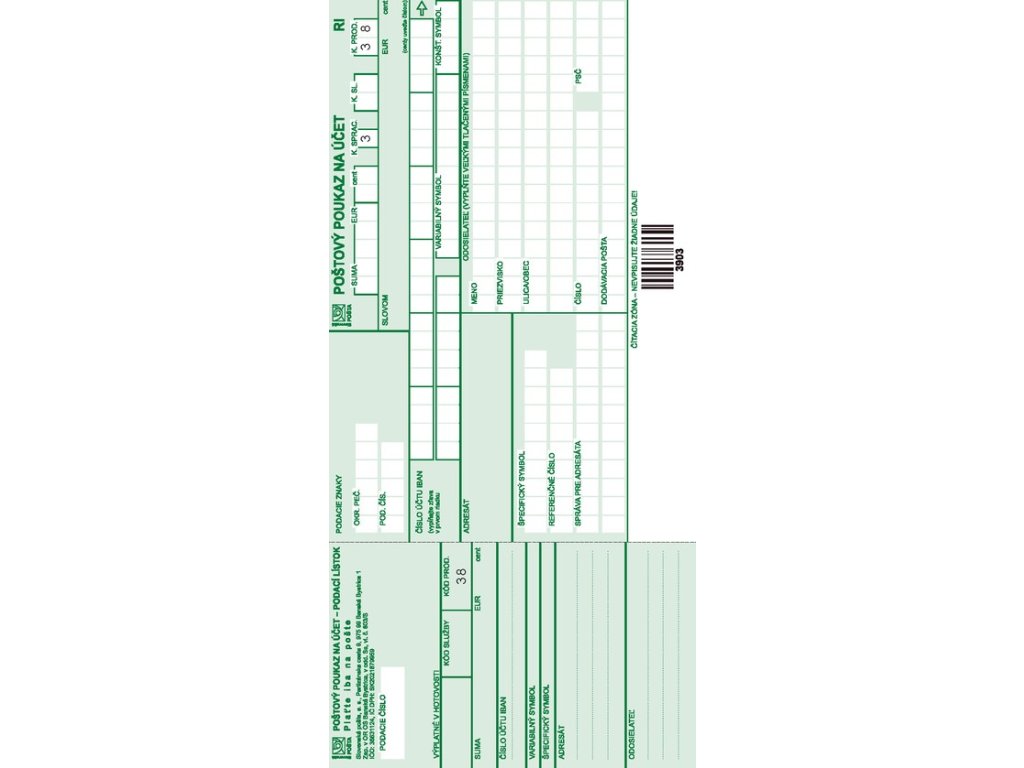 Poštový peňažný poukaz na účet RI