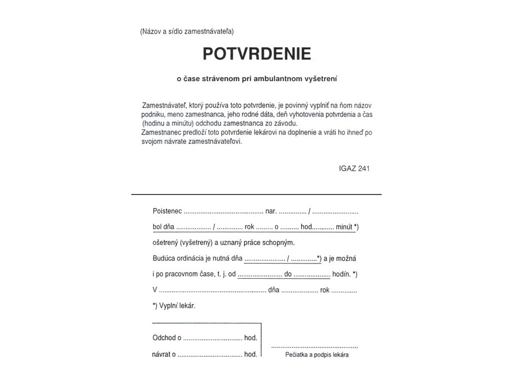 Potvrdenie o čase strávenom pri vyšetrení A7