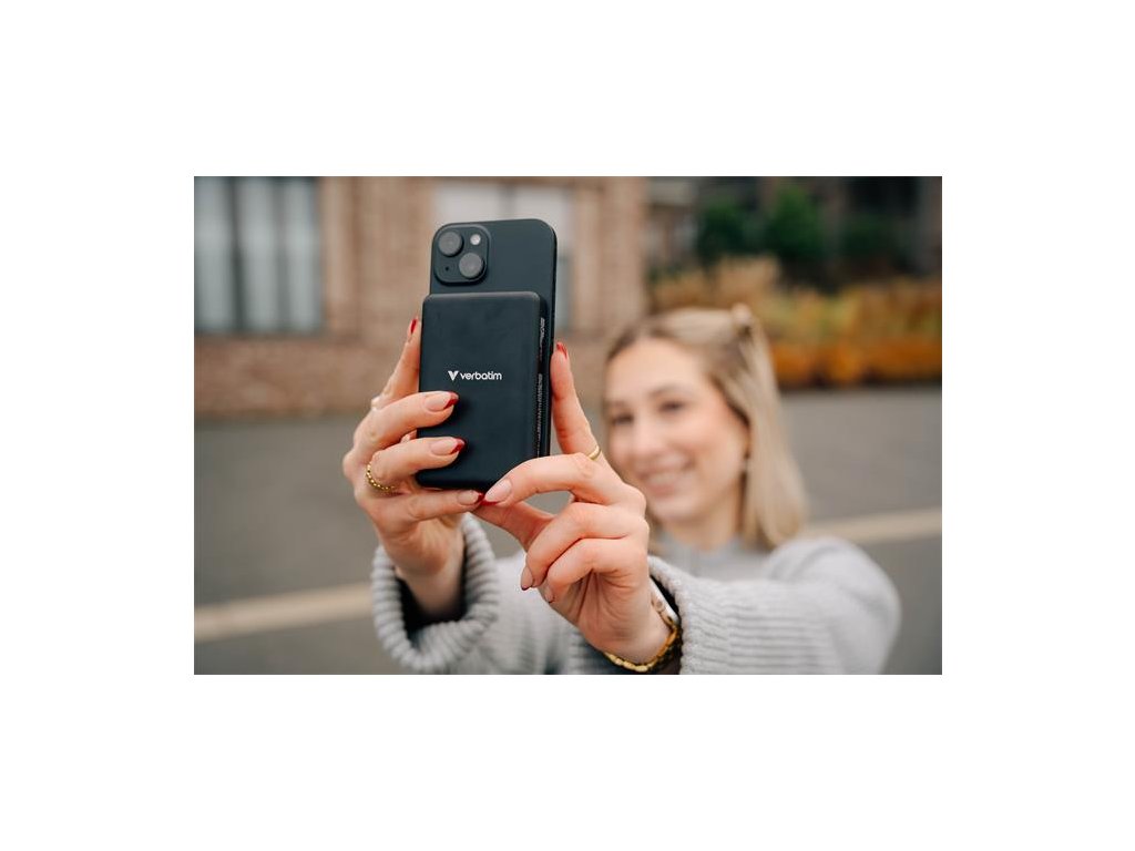 Power banka Charge ’n’ Go Essential s magnetickým bezdrôtovým nabíjaním poskytuje vysokokapacitné nabíjanie a optimálnu prenosnosť pre všetky tvoje zariadenia. Verbatim Power banky sú navrhnuté na všestrannosť, takže sú ideálnymi spoločníkmi na cestovanie, dochádzanie, podujatia a vonkajšie aktivity, pričom zabezpečujú spoľahlivú energiu aj na cestách.
