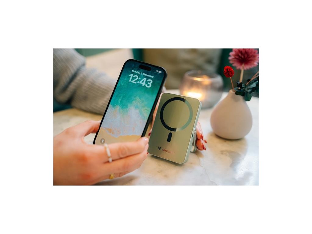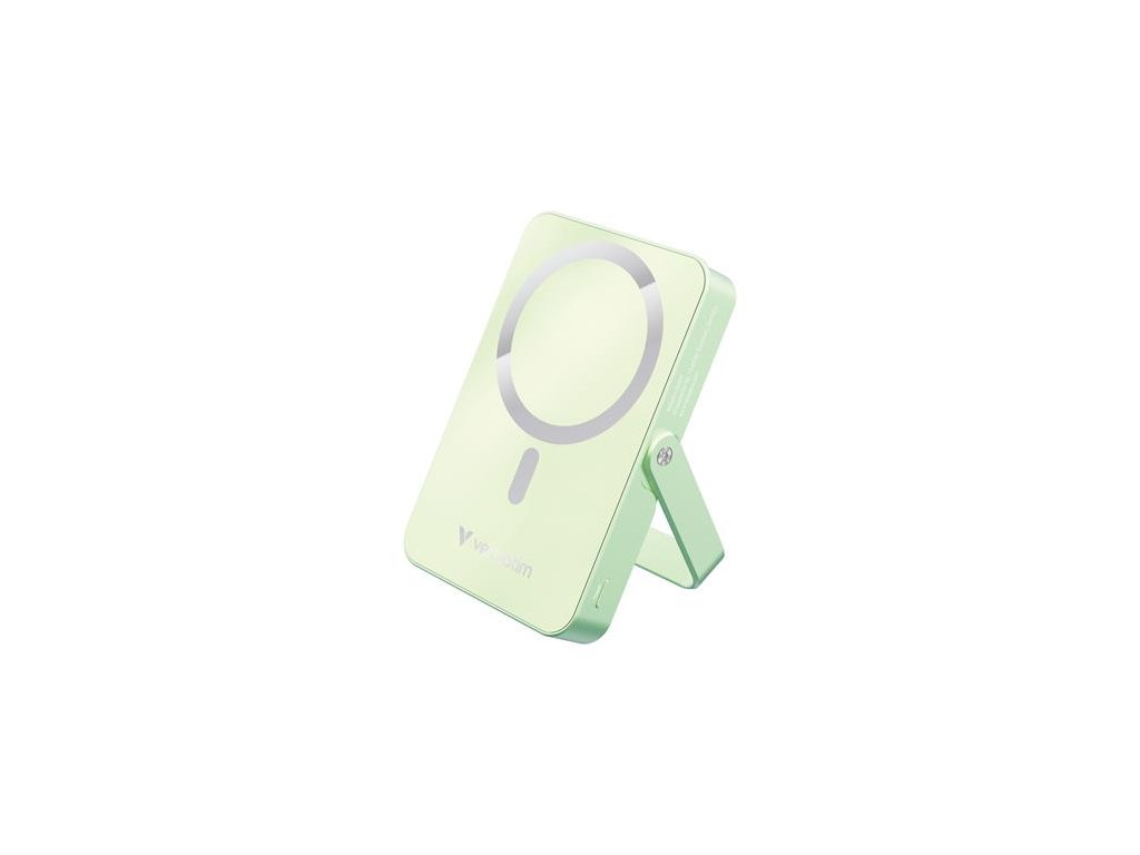 Power banka, externá batéria, magnetická (bezdrôtová), 10 000 mAh, stojanček, VERBATIM "Charge n Go", zelená