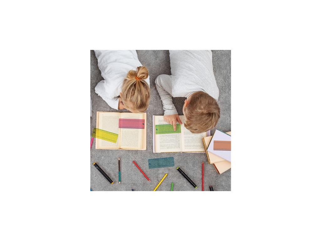 Špeciálna sada farebných pravítok na pomoc pri písaní a čítaní, užitočná v uzatvárateľnom puzdre. -5 rôznych farieb (modrá, zelená, ružová, oranžová a žltá) -rozmery: 19 x 7 cm (pravítková časť 18 cm) -ideálna na školské použitie pri písaní a čítaní -znižuje zrakové poruchy a bolesti hlavy -vyrobené z recyklovaného PET materiáluDodatočné parametre