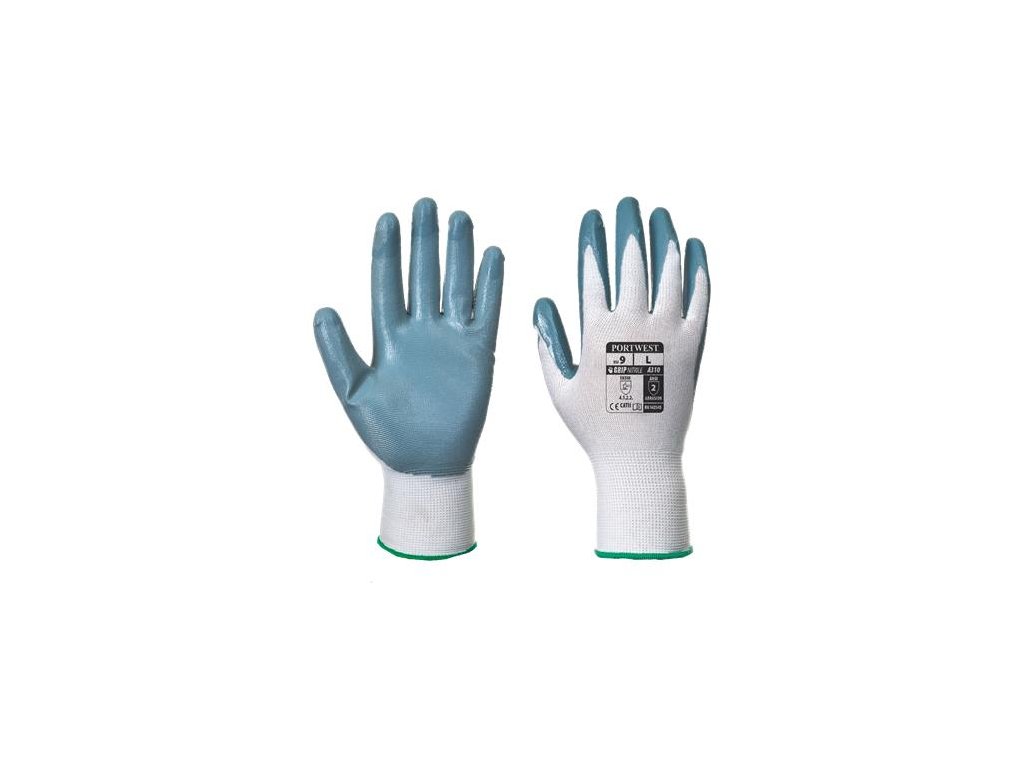 Precízne montážne rukavice, nitrilové, veľkosť: L, „Flexo Grip“, sivé-biele