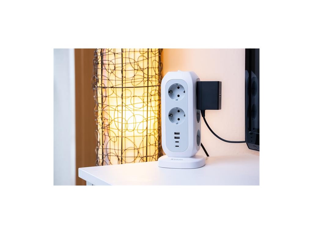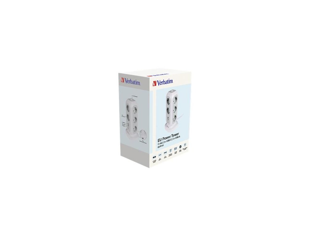 Predlžovací kábel, stojatý, 11 zásuviek, 2xUSB-A, 2xUSB-C, VERBATIM "EUPT-01"