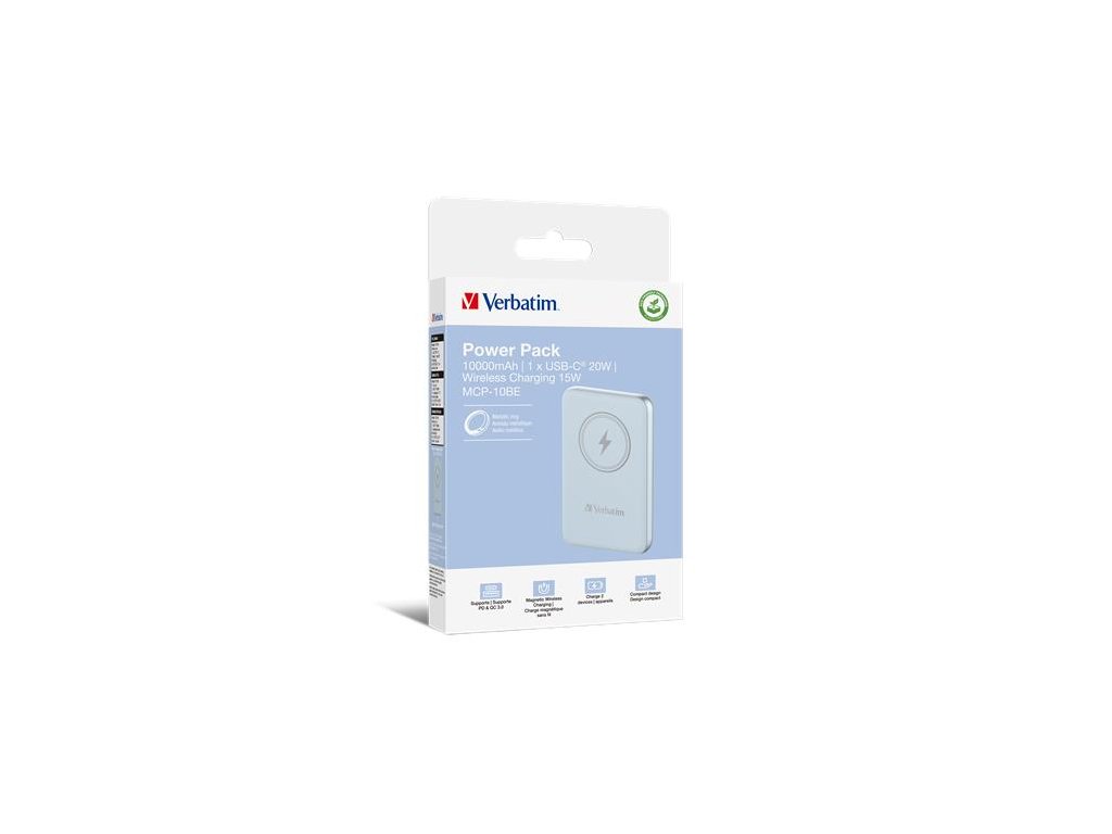 Prenosná batéria, bezdrôtové nabíjanie, 10000 mAh, VERBATIM "MCP-10, modrá