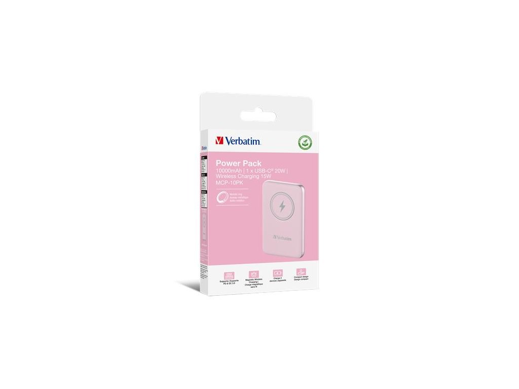 Prenosná batéria, bezdrôtové nabíjanie, 10000 mAh, VERBATIM "MCP-10, ružová