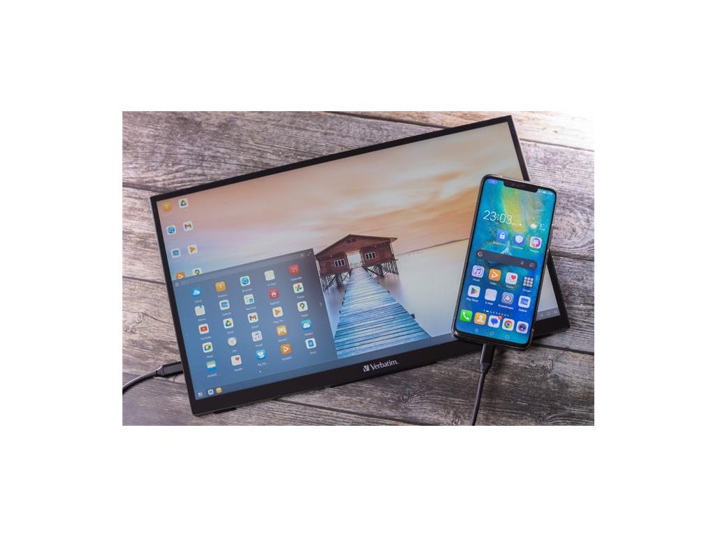 Prenosný dotykový monitor Verbatim dodáva práci alebo zábave ďalší rozmer. Môžete ho použiť ako druhú obrazovku pre váš notebook alebo poskytnúť veľký displej pre váš telefón, tablet alebo prenosný herný systém. -15,6" -1080p/Full HD -16,7 milióna farieb -plný pozorovací uhol 178 stupňov -pomer strán: 16:9 -jas: 250 cd/m2 -technológia prepínania v rovine (IPS) -technológia vysokého dynamického rozsahu (HDR) - typ panelu: 10-bodový multidotykový s technológiou G+G - vstavaný reproduktor - vstavaná podpora (0-85 stupňov) - vstupné konektory: 2xUSB-C, USB-A 2.0, HDMI - výstupný konektor: 3,5 mm audio jack -podporuje: HDR, FreeSync, Low Blue Light -pevný a odolný hliníkový obal -neoprénový ochranný kryt -hmotnosť: 1180 g -rozmery: 357,1 x 215 x 6/12 mm (min./max.) (Šírka x V x H ) Systémové požiadavky: -HDMI (vyžaduje sa napájanie, je súčasťou dodávky) -USB-C podporuje DisplayPort Alt Mode Kompatibilita OS: -Operačný systém Android -Windows 11/10/8 -Operačný systém Mac -iOS (vyžaduje sa adaptér pre zariadenia Lightning, nie je súčasťou dodávky )Dodatočné parametre