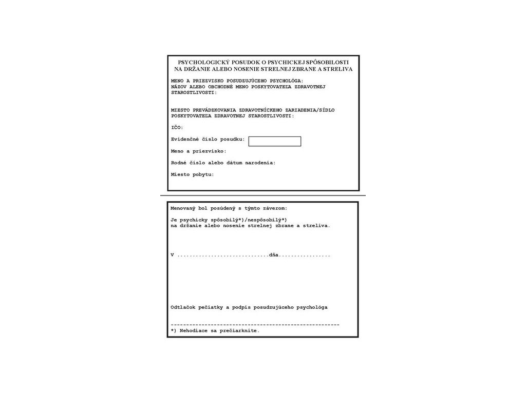 Psychologický posudok na zbrane-kartička