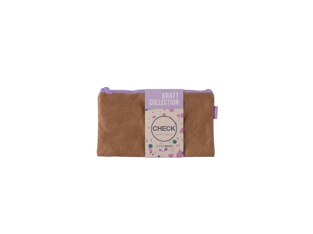 Puzdro na drobnosti ako súčasť novej kolekcie "Kraft". - vynikajúce na uloženie dokumentov, kresieb, telefónu alebo iných predmetov (papiernictvo, lieky a pod.). - s unikátnou textúrou koženého efektu a farebným zipsom - je vyrobený zo špeciálneho a odolného materiálu - ľahko sa čistí, vodeodolný - materiál: polyetylén s vysokou hustotou - rozmer: DL rozmer šeku (230 mm x 130 mm) - zips rôznych farieb, farbu nemožno vybrať - farby zipsov: tyrkysová modrá, fialová, ružová, smaragdovo zelená v pastelových odtieňochDodatočné parametre
