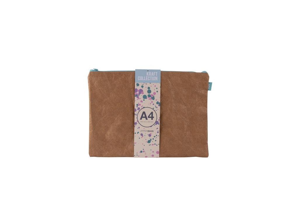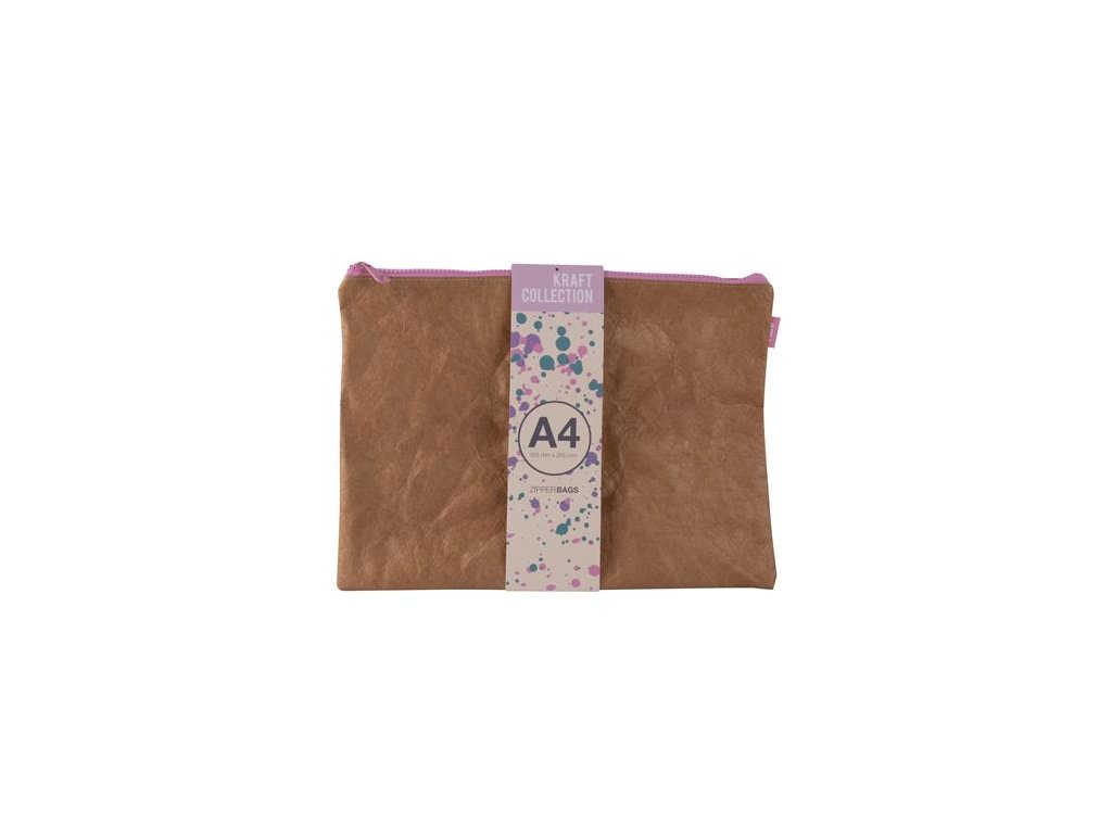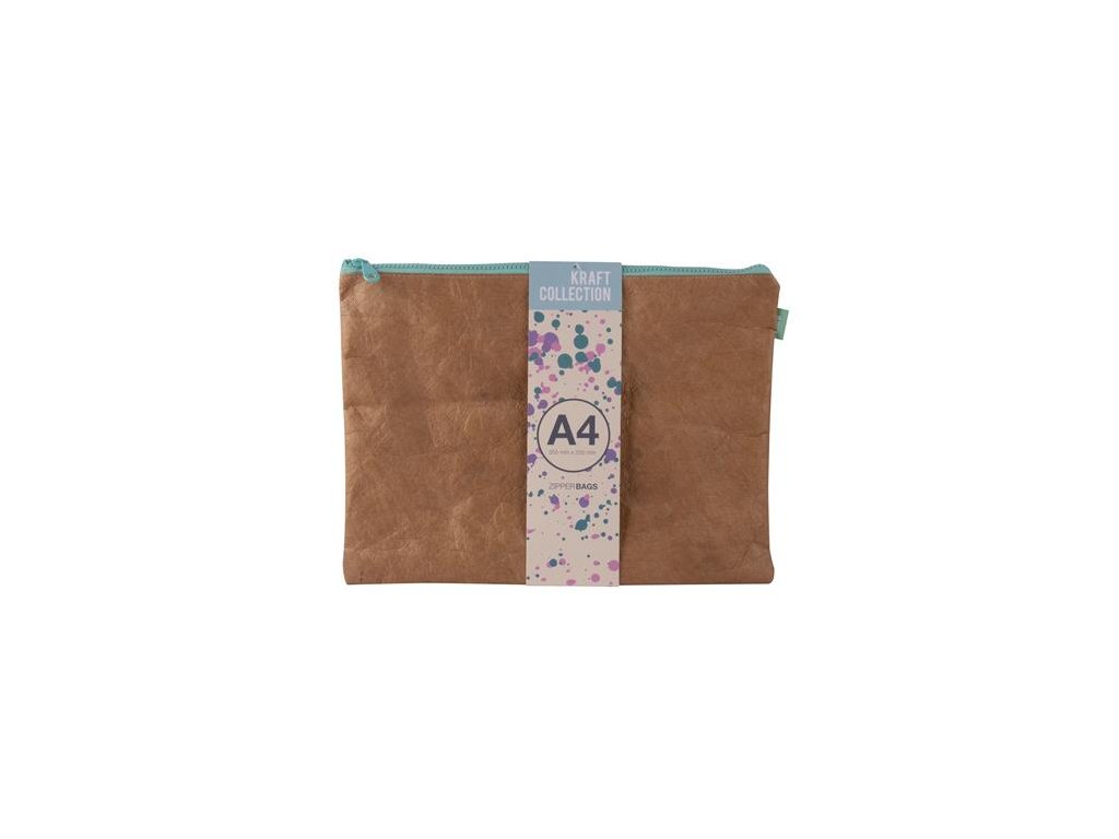 Puzdro na drobnosti ako súčasť novej kolekcie "Kraft". - vynikajúce na uloženie dokumentov, kresieb, telefónu alebo iných predmetov (papiernictvo, lieky a pod.). - s unikátnou textúrou koženého efektu a farebným zipsom - je vyrobený zo špeciálneho a odolného materiálu - ľahko sa čistí, vodeodolný - materiál: polyetylén s vysokou hustotou - rozmer: A4 (355 mm x 255 mm) - zips rôznych farieb, farbu nemožno vybrať - farby zipsov: tyrkysová modrá, fialová, ružová, smaragdovo zelená v pastelových odtieňochDodatočné parametre