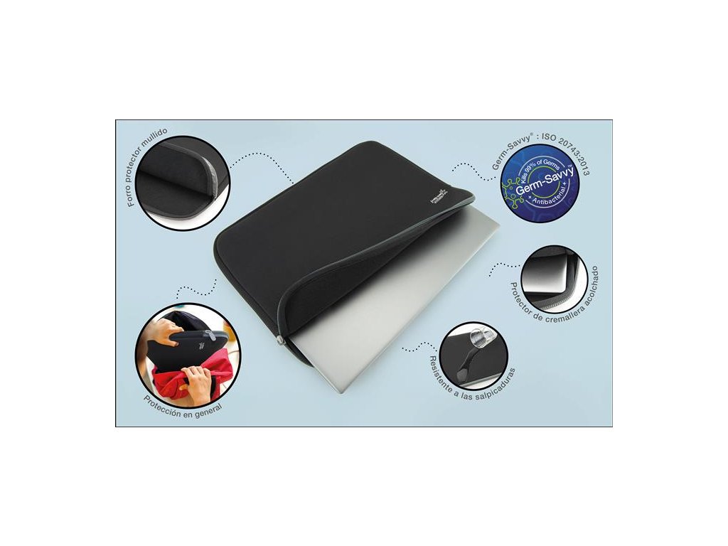 Polstrované puzdro na notebook z neoprénového materiálu, ktoré chráni notebook, tablet a ich príslušenstvo pred nechceným poškodením a poškriabaním. ošetrené antibakteriálnym materiálom Germ-Savvy® (na báze iónov striebra a zinku), ktorý inhibuje a zabíja 99 % baktérií ľahký, odolný a tenký dizajn ľahko sa prenáša, či už v ruke alebo v batohu neoprénový materiál prémiovej kvality, ktorý chráni pred prachom a vlhkosťou vhodné na každodenné použitie pri cestovaní moderný dizajn, zapínanie na zips na pozdĺžnej strane ideálne na uloženie notebookov s max veľkosťou 15,6" obalový mateiál bez plastov vnútorné rozmeyr: 380 mm x 280 mm (Š x V) Značka: RAPESCO Výrobca: Rapesco-Tacwise BV Adresa: Kraijenhoffstraat, 137A, 1018RG Amsterdam, Netherlands Web: www.rapesco.com Email: support@rapesco-tacwise.nlDodatočné parametre