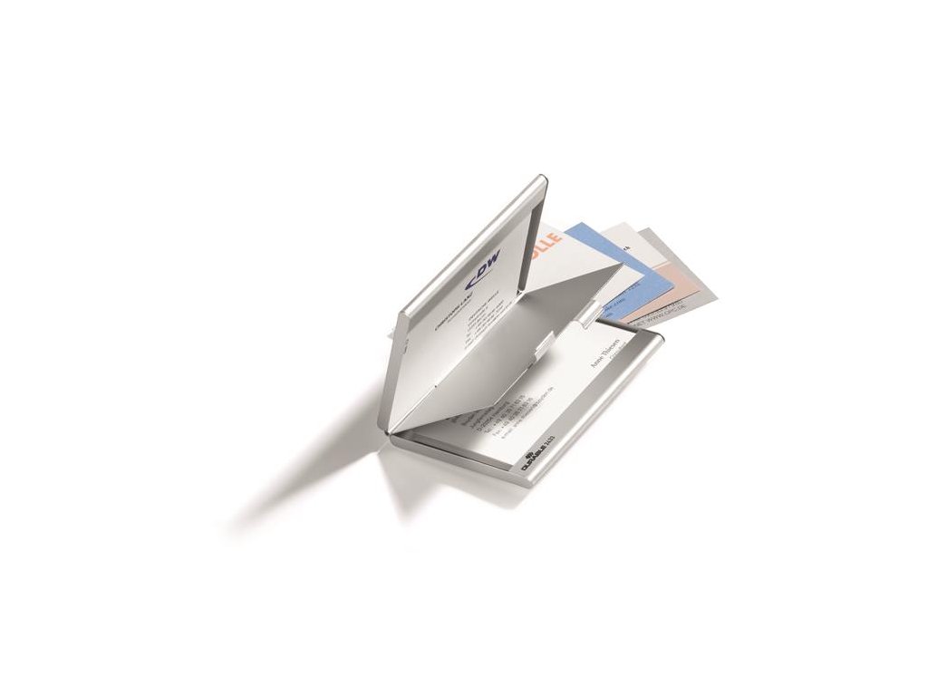 Puzdro na vizitky, kovové, 20-kusové, DURABLE "CARD BOX DUO", strieborná