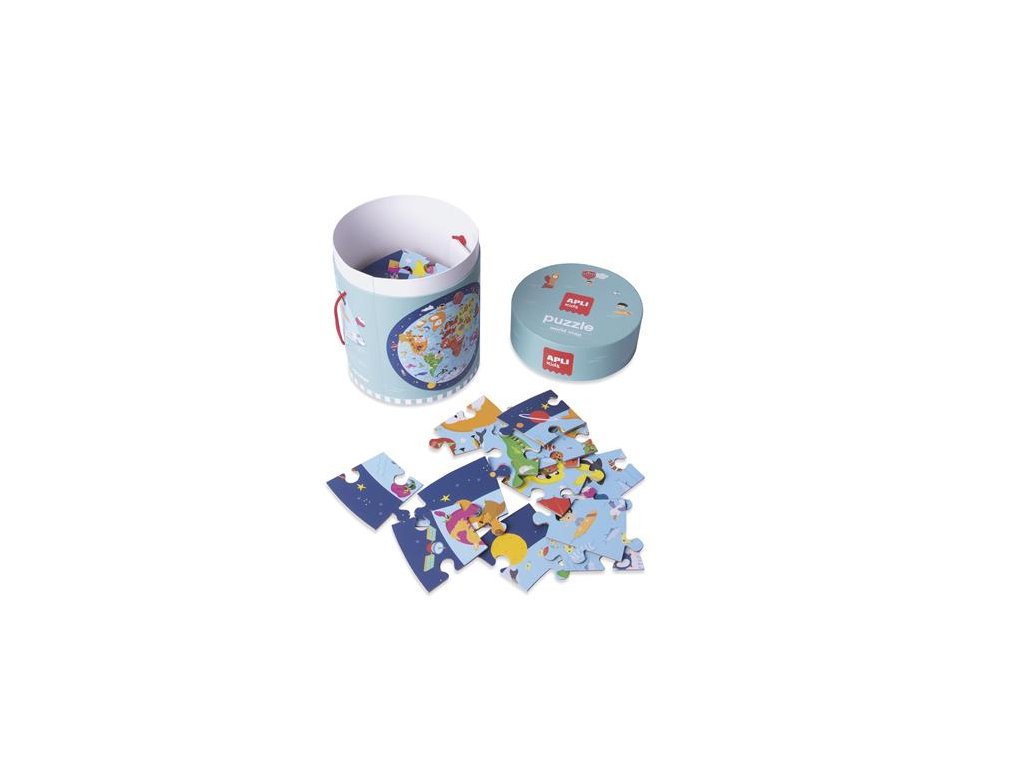 APLI Kids: Kreatívna zábava vo svete puzzle! Okrúhle puzzle, ktoré hravou formou predstavuje mapu našej zeme. Počas hry sa zoznámime s kontinentami a oceánmi. Puzzle je výborné pre deti, pretože pri hre rozvíja množstvo zručností: ovplyvňuje ich schopnosť koncentrácie, pozornosť, pamäť. Môže sa použiť na rozvoj jemnej motoriky, rozpoznávania tvarov, koordinácie očí a úst a logických zručností. 48 ks puzzle v praktickom prenosnom boxe priemer puzzle: cca. 50 cm balenie obsahuje plagát, na ktorom je zobrazený finálny model a veľkosť puzzle, čím pomôže s puzzle aj tým najmenším ideálne aj pre menšie deti: je vyrobené z hrubého kartónu, vďaka čomu je odolné odporúčaný vek dieťaťa: od 5 rokov Bezpečnostné upozornenia: Môže obsahovať malé časti. Nebezpečenstvo udusenia. Môže sa používať pod dohľadom dospelej osoby.Dodatočné parametre