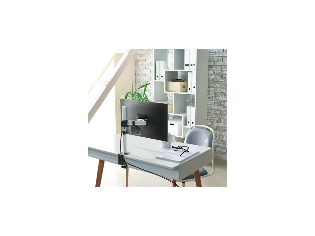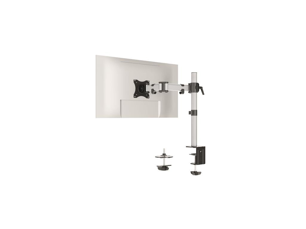 Držiak monitora pre 1 obrazovku, s jedinečnou možnosťou montáže, pomocou skrutky a stolovej svorky - výšku, uhol sklonu a polohu monitora možno jednoducho a individuálne nastaviť, čím napomáha ergonomickej práci - možno ho jednoducho otáčať o 360°, takže monitor môžete pohodlne používať aj v režime na výšku alebo na šírku - rameno možno vysunúť až na 43 cm a otočiť až o 180° pomocou troch pántov - plynule nastaviteľnú výšku na 45 cm vysokom stĺpe - s univerzálnym VESA štandardná veľkosť (75 x 75 mm alebo 100 x 100 mm) - veľkosť 27" a 8 kg - pre štandardné monitory doDodatočné parametre