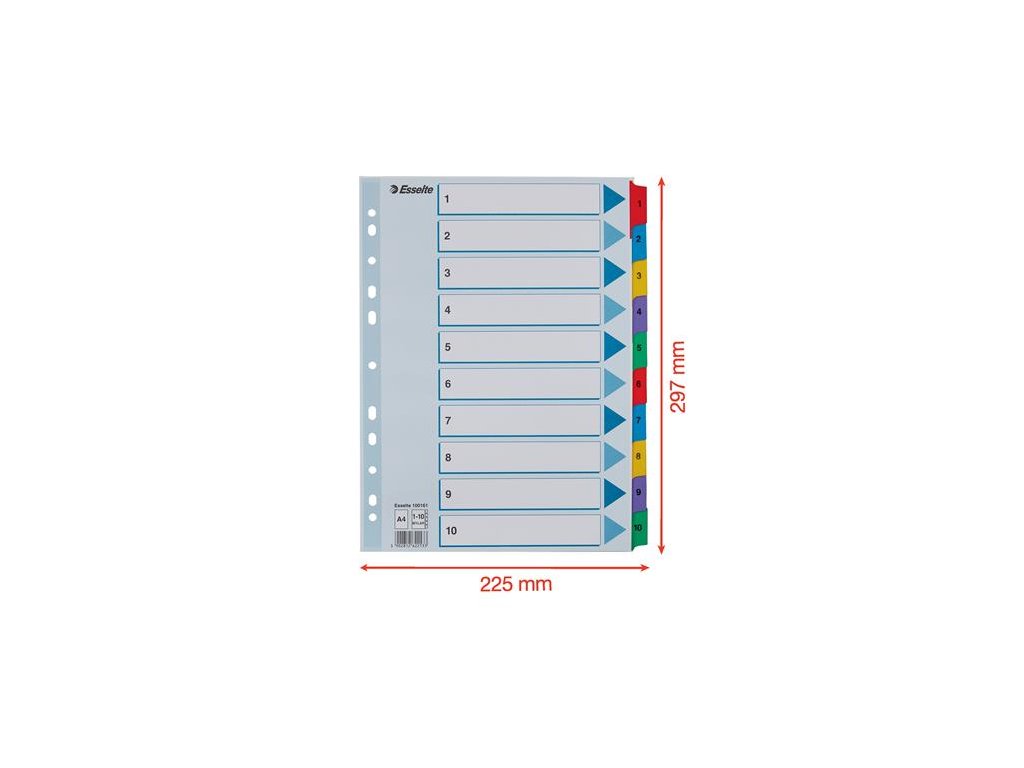 Register, kartón, A4, 1-10, ESSELTE "Mylar"