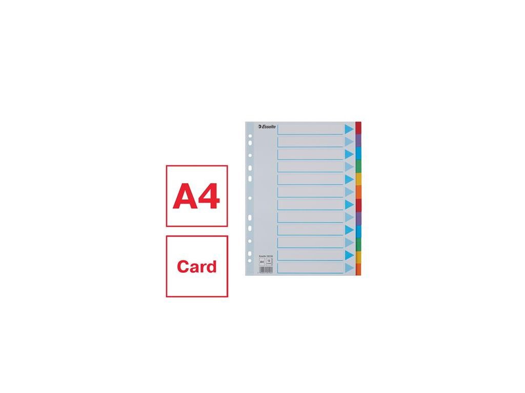 Register, kartón, A4, 12 dielny, popisovateľná predná strana, ESSELTE "Standard", farebný
