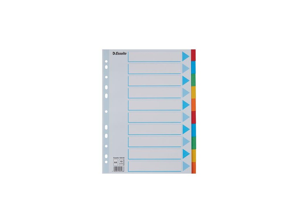 Register, kartónový, A4, 10 dielny, popisovateľná predná strana, ESSELTE "Standard", farebný