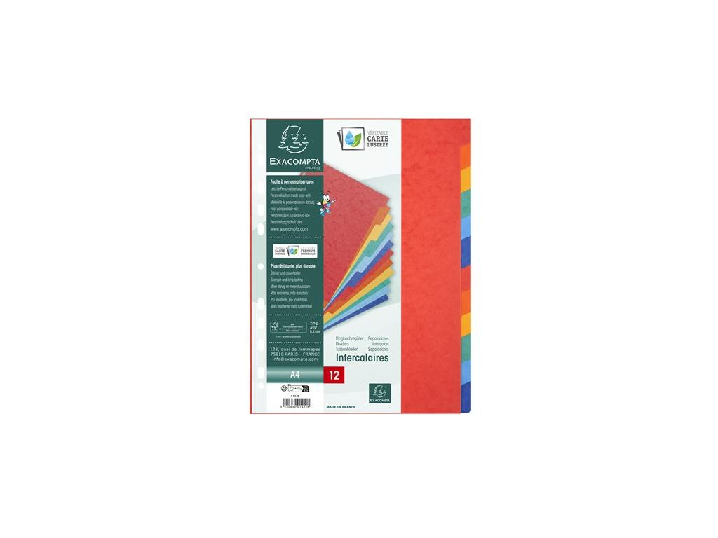 Register, kartónový, A4, 12 dielny, EXACOMPTA, farebný