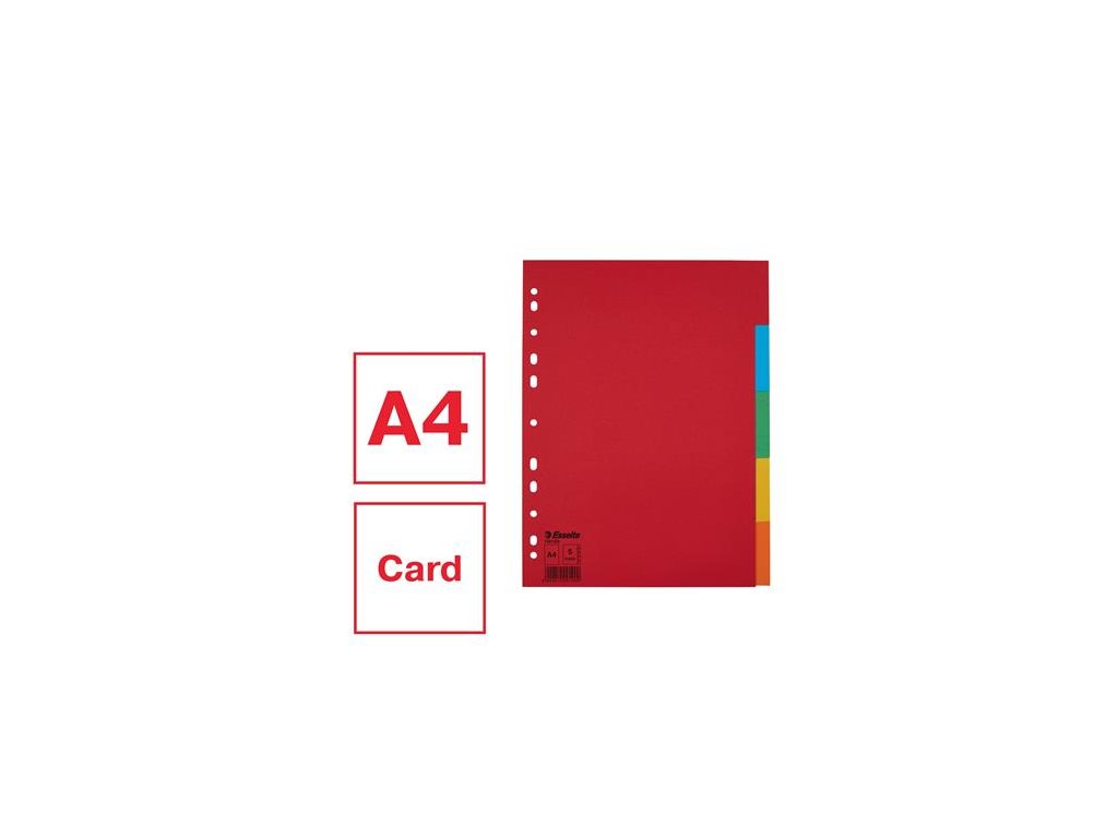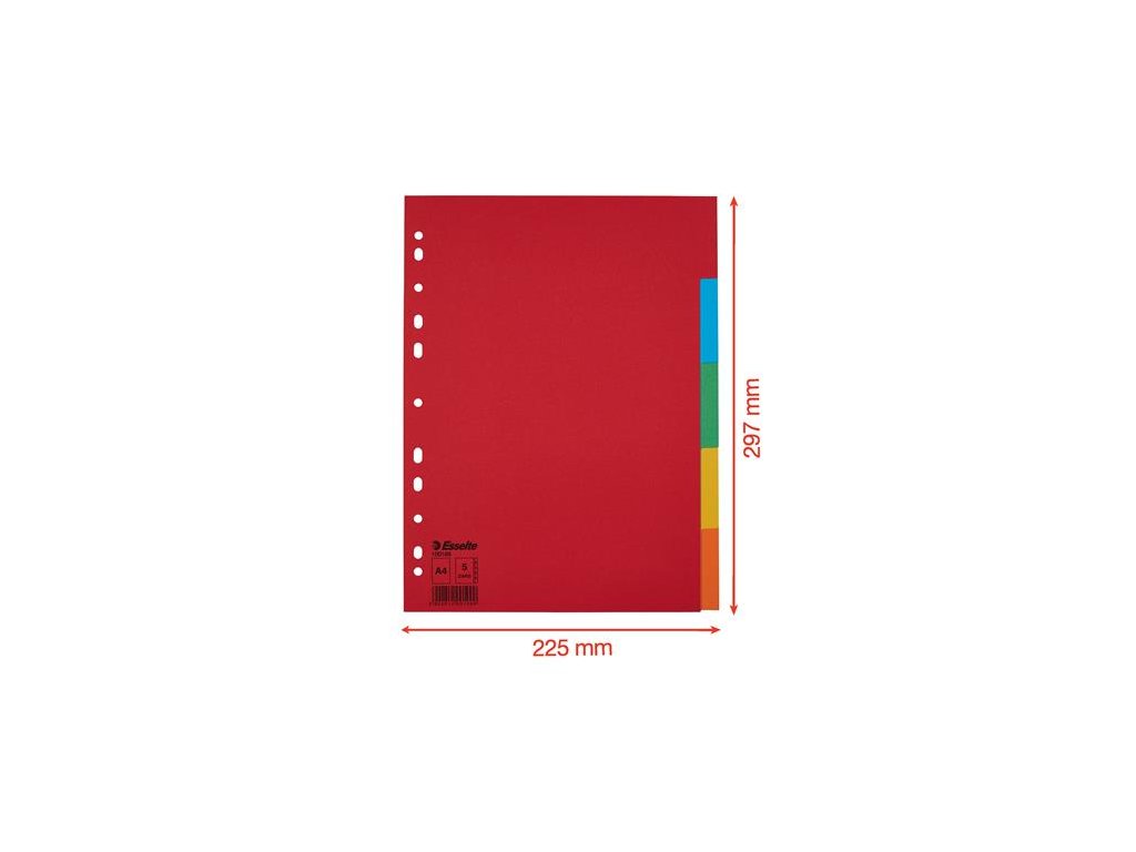 Register, kartónový, A4, 5 dielny, ESSELTE "Economy", farebný
