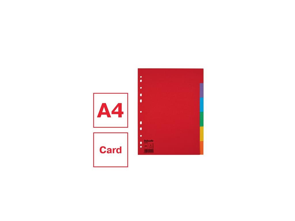 Register, kartónový, A4, 6 dielny, ESSELTE "Economy", farebný