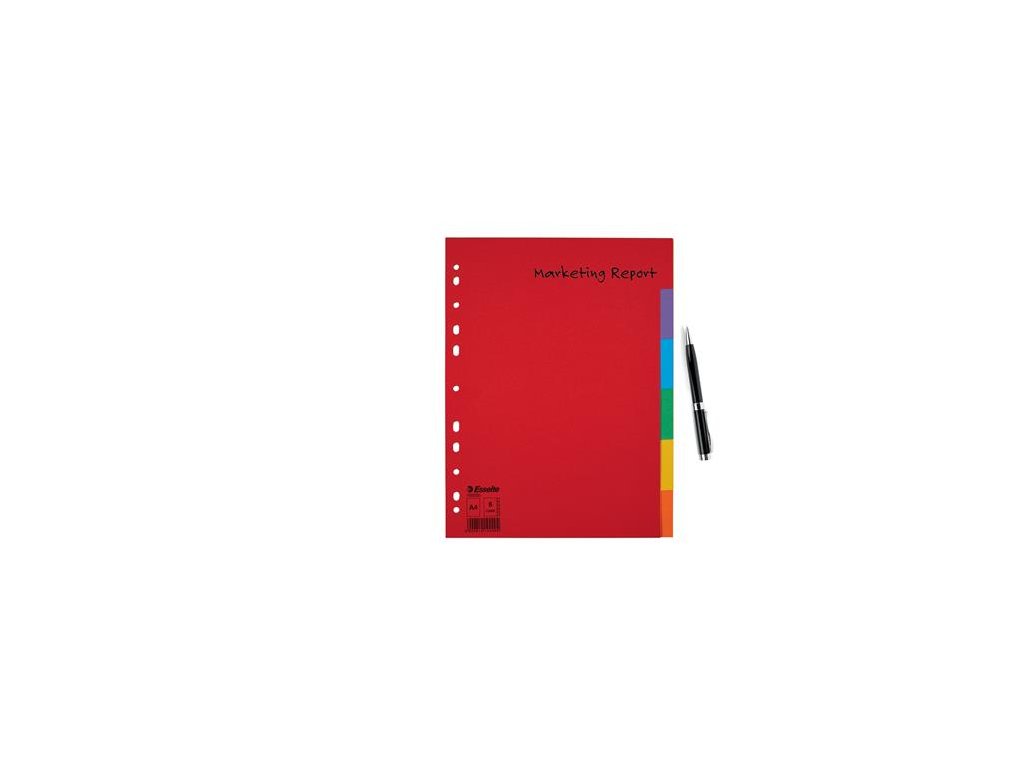 formát: A4 pre triedenie založených dokumentov recyklovaný odolný kartón, 160 g/m2 farebné listy počet dier: 11 Značka: ESSELTE Výrobca: Esselte Kft. Adresa: 1139 Budapest, Lomb u. 37-39. A ép. II. 8., Hungary Web: https://www.accobrands.com/brands/ Email: hungarymarketing@acco.comDodatočné parametre