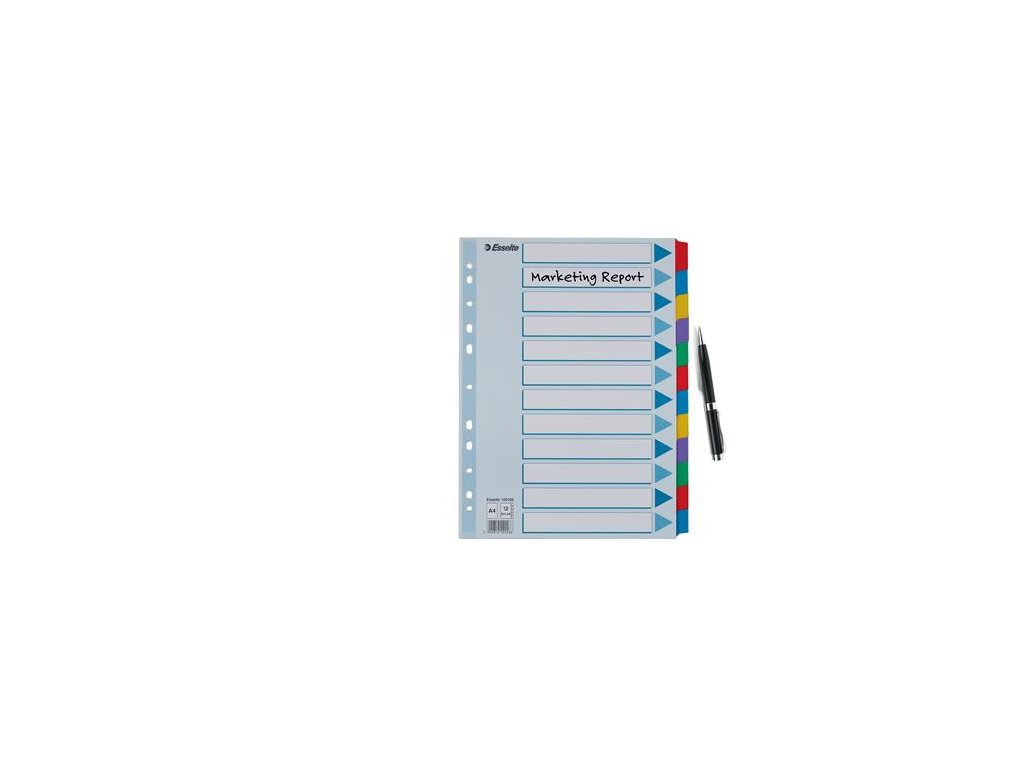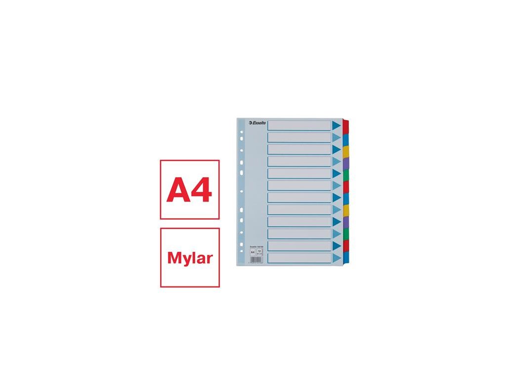 Register, laminovaný kartón, A4, 12 részes, ESSELTE "Mylar", farebný