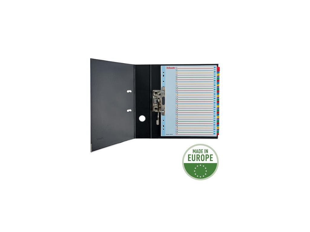 laminovaná kartónová predná strana guličkovým perom popisovateľné, gumou odstrániteľné písmo ušká sú pokryté farebným plastom formát A4 maxi sprehľadňuje orientáciu v dokumentoch založených v závesných obaloch počet dier: 11 materiál: laminovaný kartón (160 g/m2) Značka: ESSELTE Výrobca: Esselte Kft. Adresa: 1139 Budapest, Lomb u. 37-39. A ép. II. 8., Hungary Web: https://www.accobrands.com/brands/ Email: hungarymarketing@acco.comDodatočné parametre