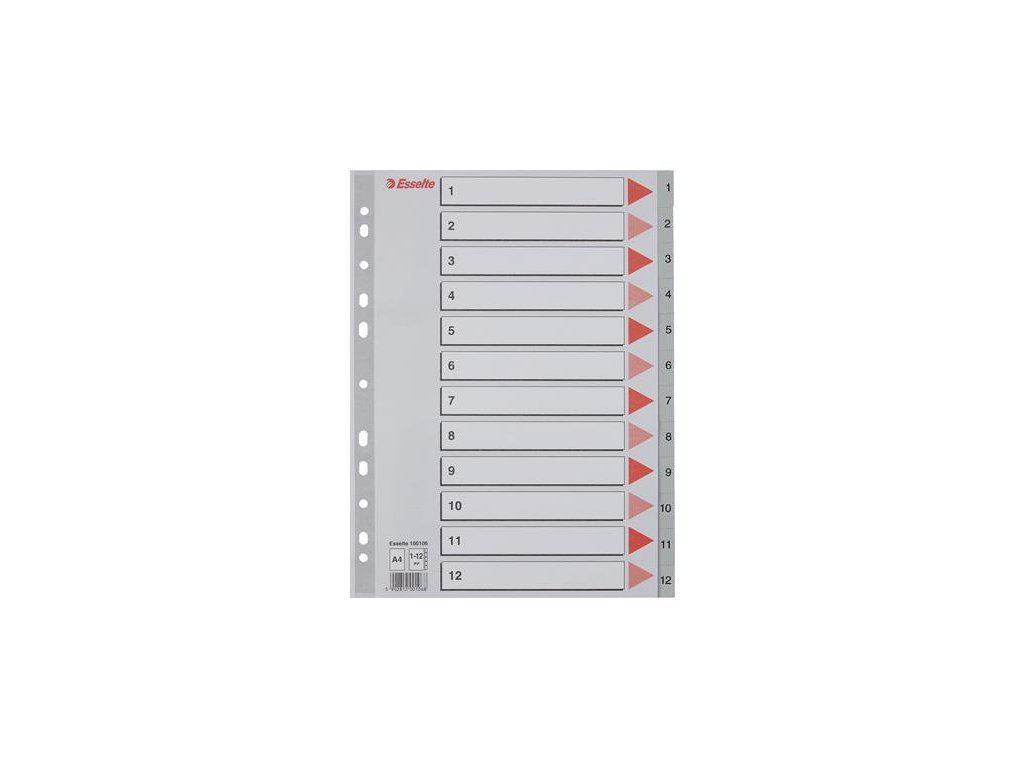 Register, plastový, A4, 1-12, ESSELTE, sivý