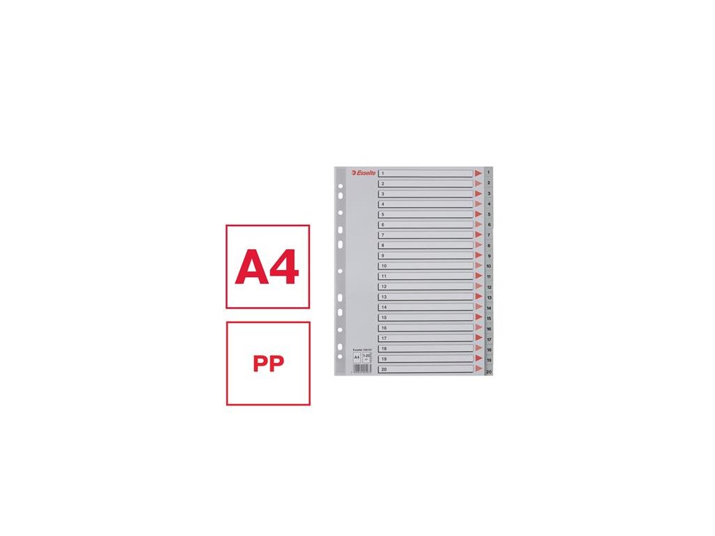 Register, plastový, A4, 1-20, ESSELTE, sivý