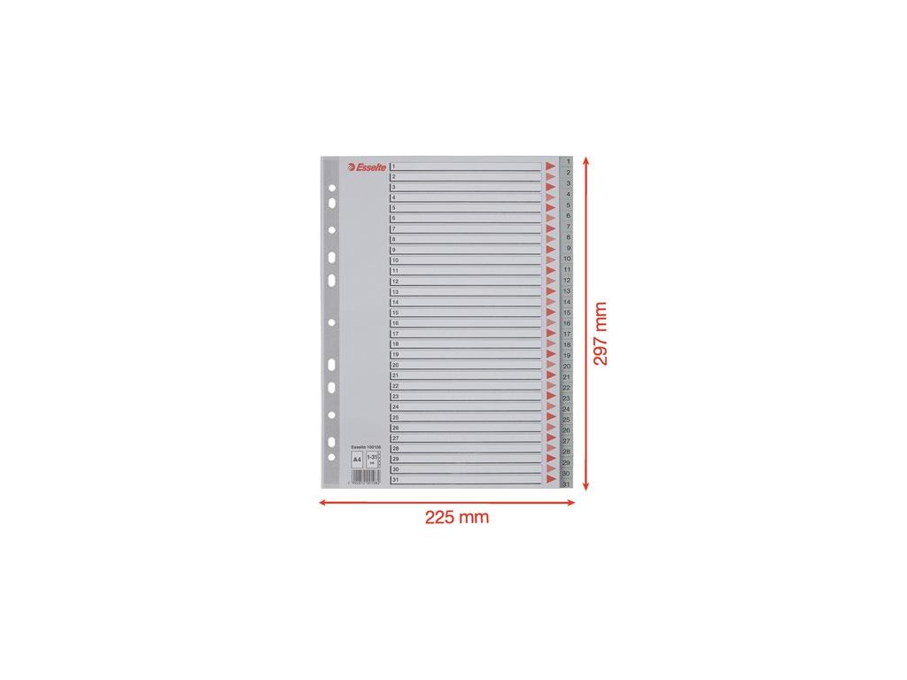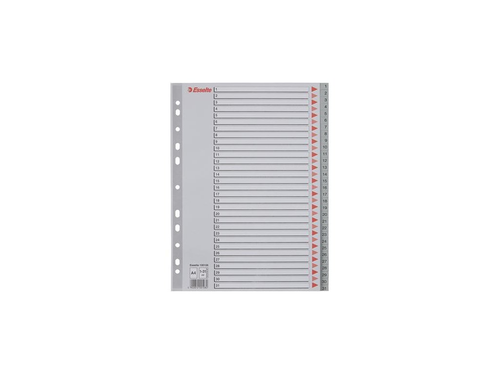 Register, plastový, A4, 1-31, ESSELTE, sivý