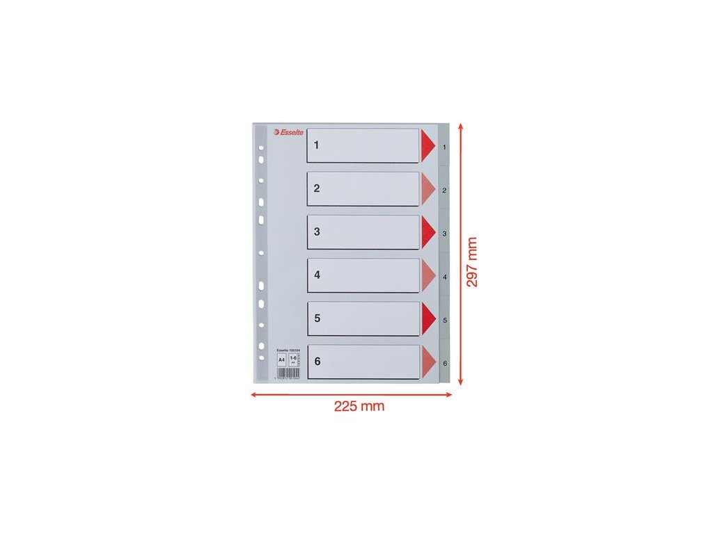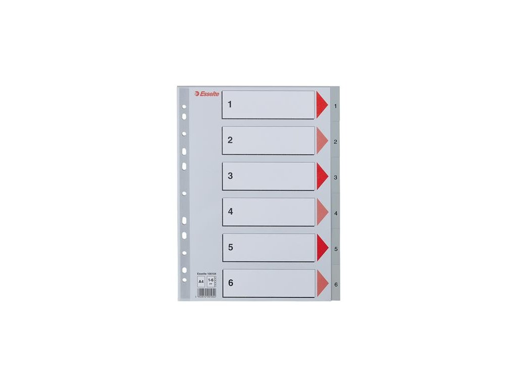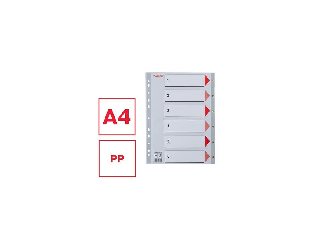 Register, plastový, A4, 1-6, ESSELTE, sivá