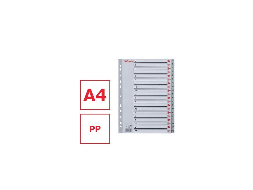 Register, plastový, A4, A-Z, ESSELTE, sivý