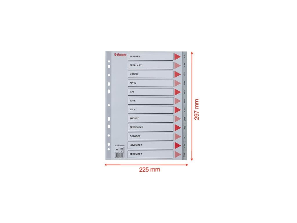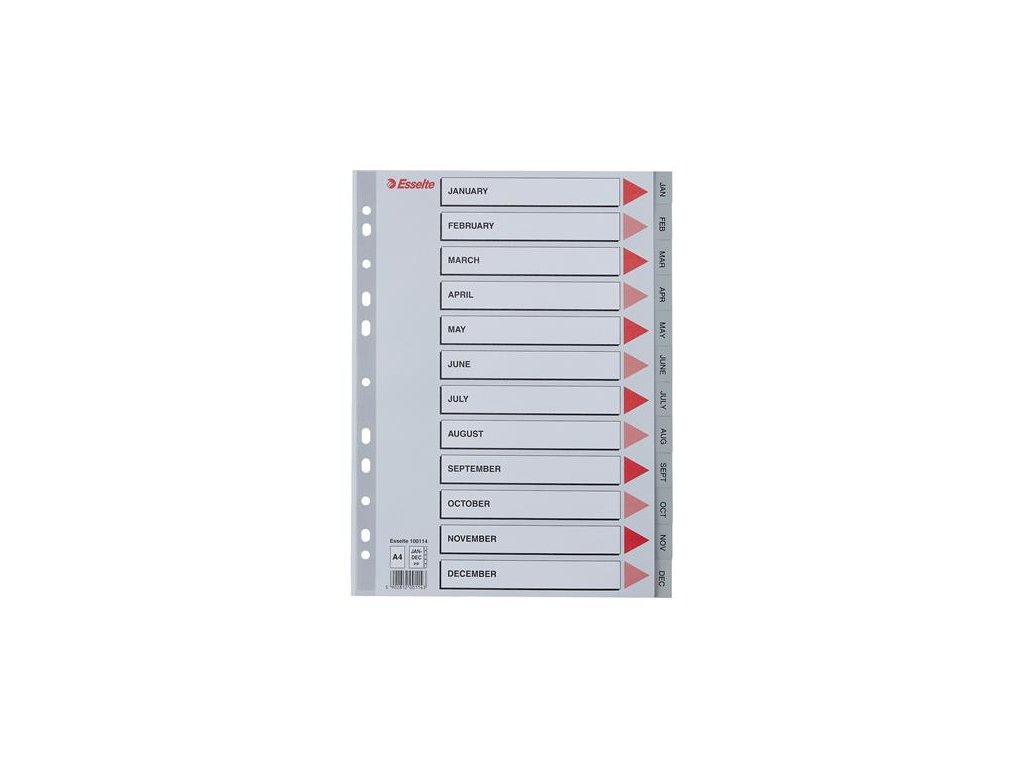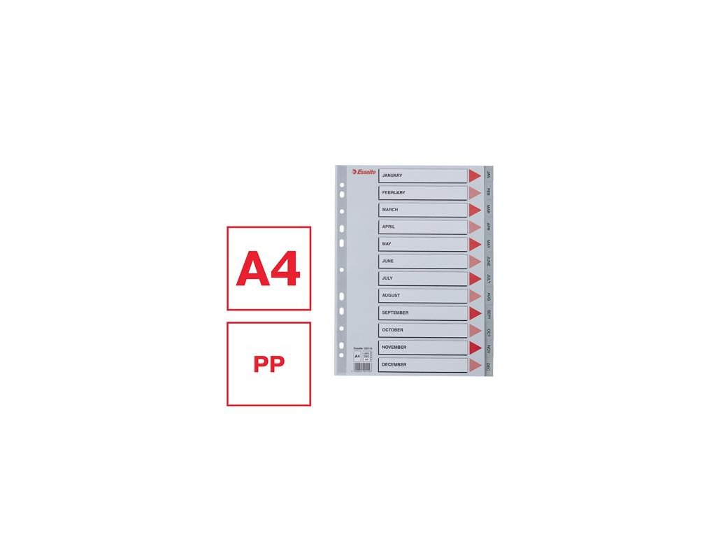 Register, plastový, A4, Jan-Dec, ESSELTE, sivý