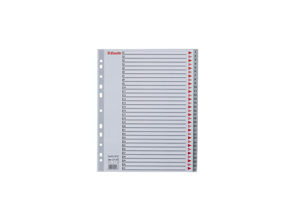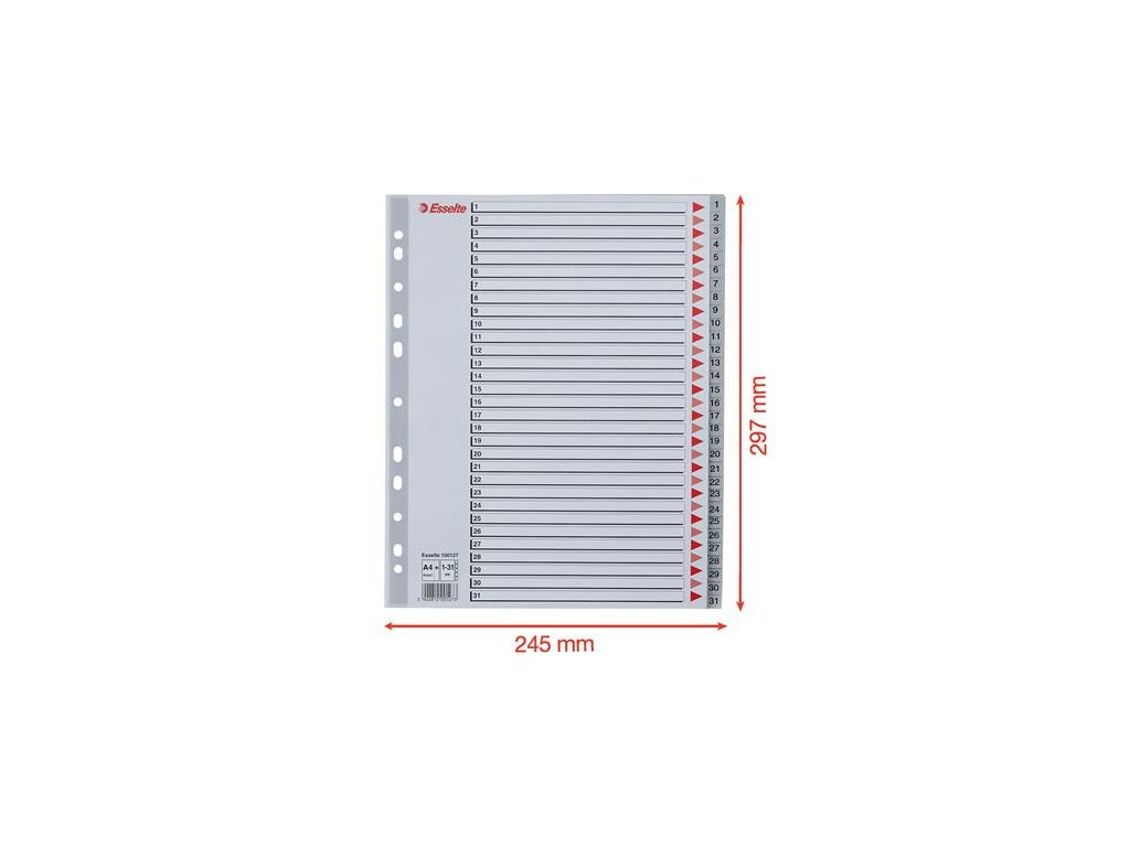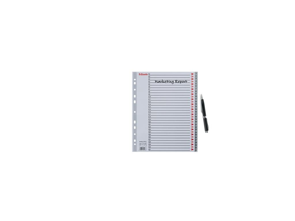 Register, plastový, A4 Maxi, 1-31, ESSELTE, sivý