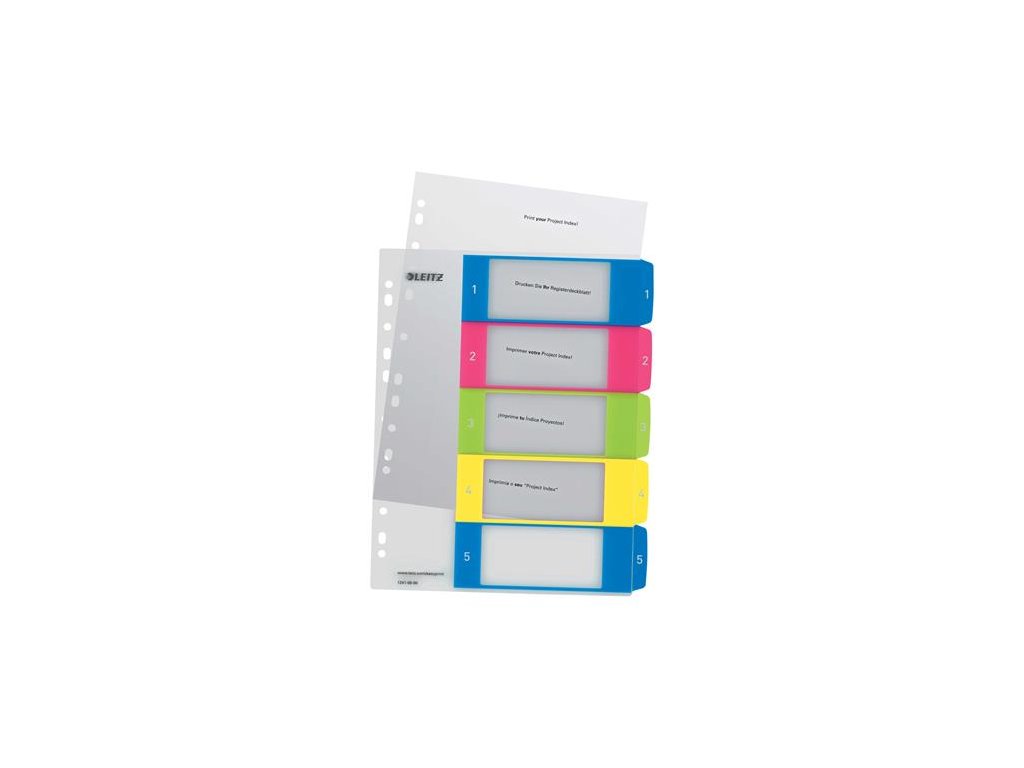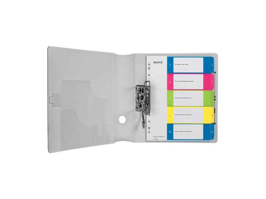 - rôznofarebný register - veľké obdĺžniky na prednej strane na uvedenie obsahu - registre s označením 1-5 na rýchly dosah dokumentov, povrch vhodný na tlač - posilnená časť zakladania na prednej starne - 11 dier - 0,3 mm hrubý polypropylénový materiál - rozdeľovače formátu A4+ sú širšie než štandardné euroobaly, preto zakladané dokumenty možno ľahko triediť - vypracujte a vytlačte vlastný vecný register pomocou programu, ktorý nájdete na webstránke: www.leitz.com/easyprint Značka: LEITZ Výrobca: Esselte Kft. Adresa: 1139 Budapest, Lomb u. 37-39. A ép. II. 8., Hungary Web: https://www.accobrands.com/brands/ Email: hungarymarketing@acco.comDodatočné parametre
