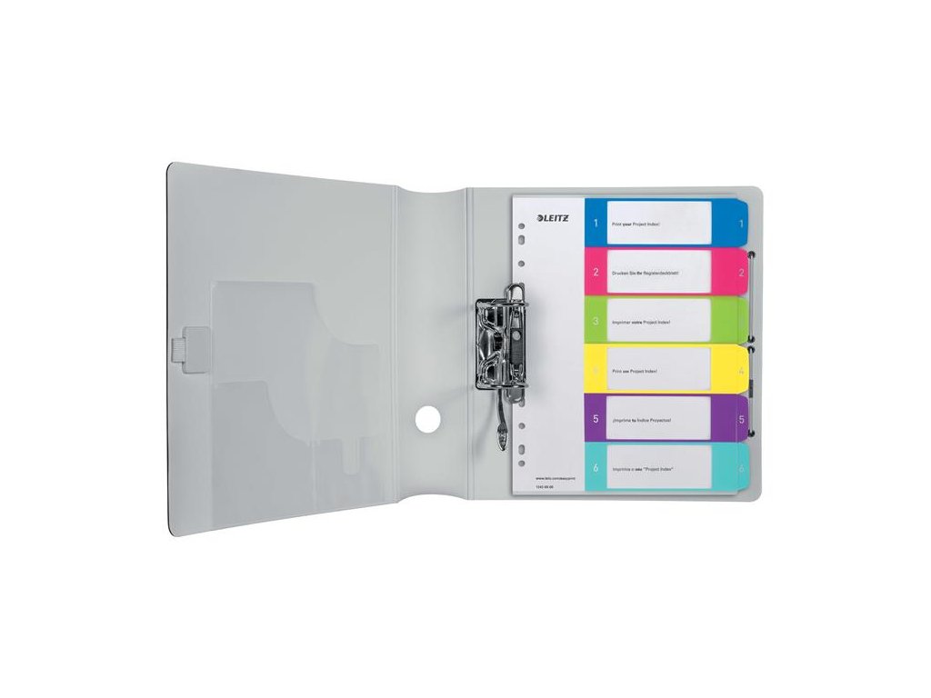 - rôznofarebný register - veľké obdĺžniky na prednej strane na uvedenie obsahu - registre s označením 1-6 na rýchly dosah dokumentov, povrch vhodný na tlač - posilnená časť zakladania na prednej starne - 11 dier - 0,3 mm hrubý polypropylénový materiál - rozdeľovače formátu A4+ sú širšie než štandardné euroobaly, preto zakladané dokumenty možno ľahko triediť - vypracujte a vytlačte vlastný vecný register pomocou programu, ktorý nájdete na webstránke: www.leitz.com/easyprint Značka: LEITZ Výrobca: Esselte Kft. Adresa: 1139 Budapest, Lomb u. 37-39. A ép. II. 8., Hungary Web: https://www.accobrands.com/brands/ Email: hungarymarketing@acco.comDodatočné parametre