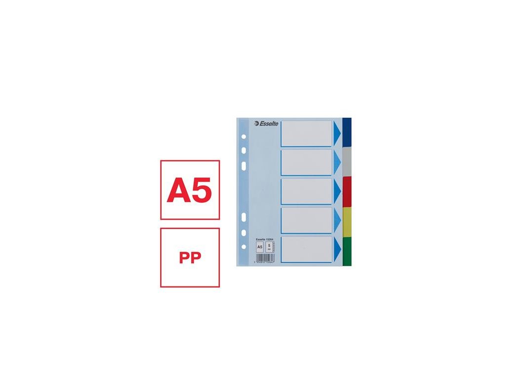 Register, plastový, A5, 5 oddielov, ESSELTE, farebný