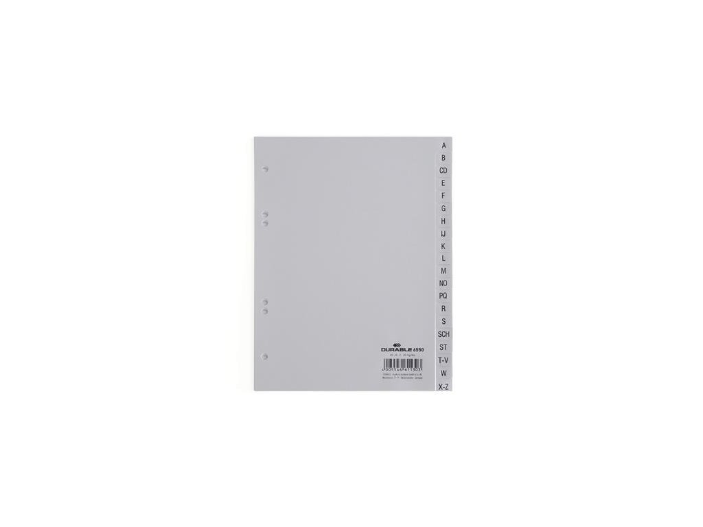 Register plastový, A5, 20-dielny, A–Z, DURABLE, sivý