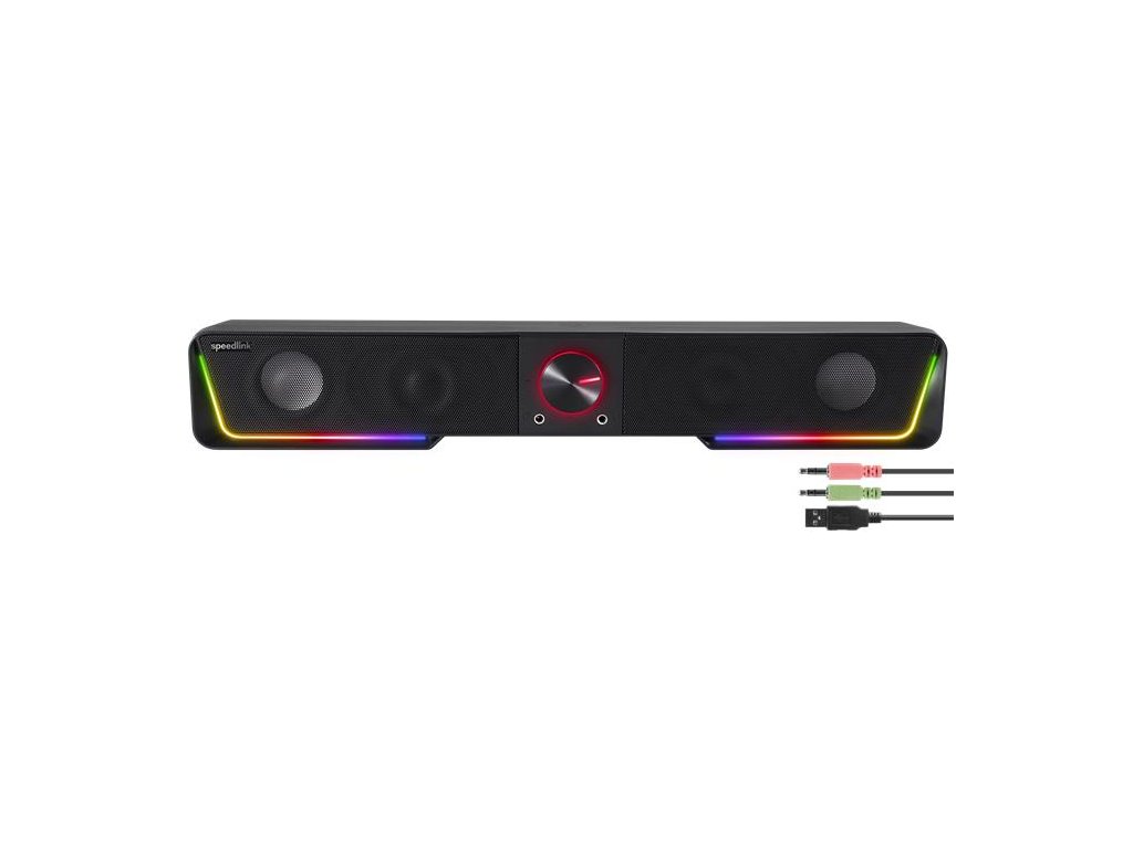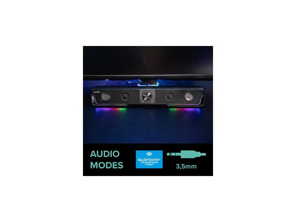 Reproduktor, 12W, 2x3.5 mm jack + USB-A, SPEEDLINK "GRAVITY RGB Stereo Soundbar", čierna